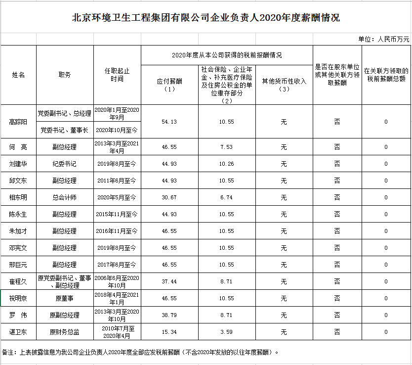 熊猫体育工程集团有限公司企业负责人2020年度薪酬情况