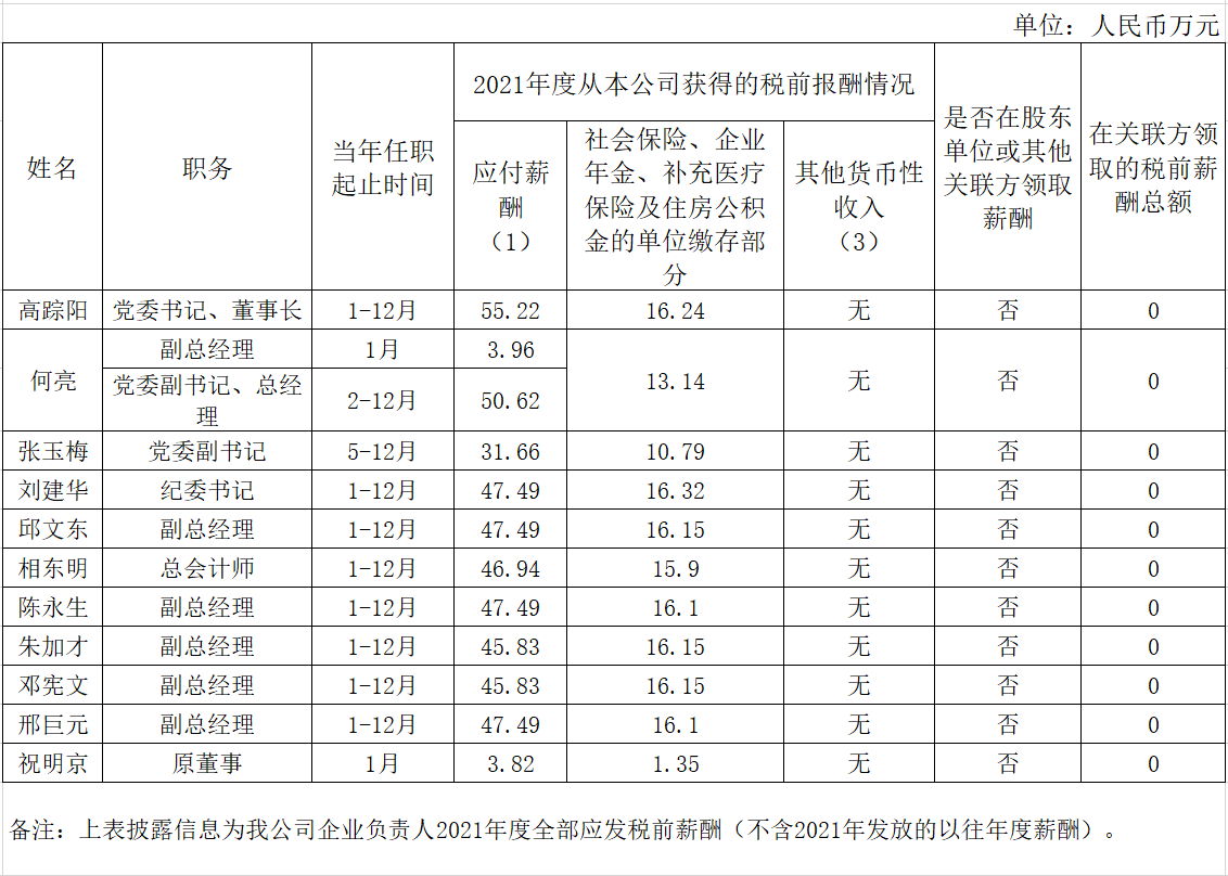 熊猫体育工程集团有限公司企业负责人2021年度薪酬情况