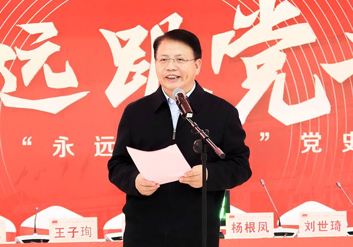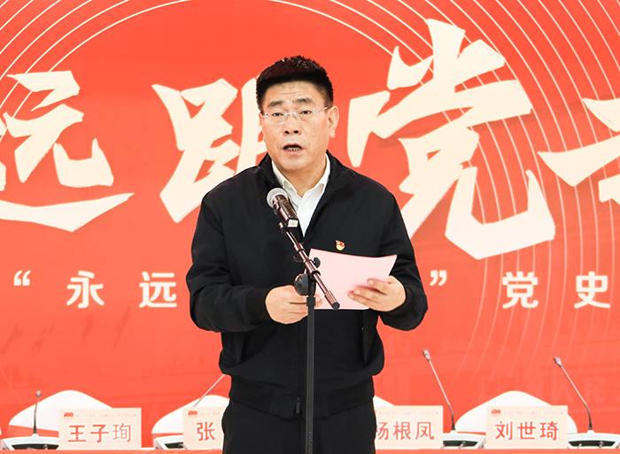 高踪阳同志向莅临现场的党史学习教育市国资委党委第七指导组各位成员表示感谢,向精心筹备、积极参与比赛的各级党组织表示感谢,向各位选手和现场表演的职工表示祝贺。