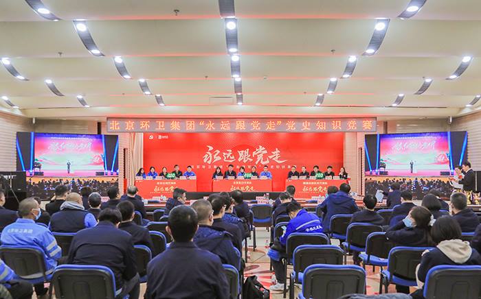本次“永远跟党走”党史知识竞赛自今年8月底启动,旨在以赛促学、以学促用,激励集团广大党员干部职工以更加饱满的工作热情、更加务实的工作作风持续推动集团高质量发展,为建设美丽北京、美丽中国贡献熊猫体育力量。集团京内外各单位党组织给予高度重视,广大干部职工踊跃报名、积极备战。比赛覆盖各个职工群体,尤其注重向基层倾斜,每支代表队5名选手中至少有2名为基层一线职工。经过初赛、复赛、半决赛的激烈比拼,环丰公司代表队、北京机扫公司代表队和集团总部机关代表队脱颖而出,进入最终的决赛,进行“巅峰对决”。