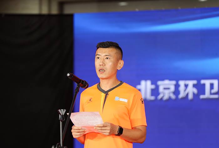 熊猫体育足球队队员代表、固废物流公司员工王洋发言