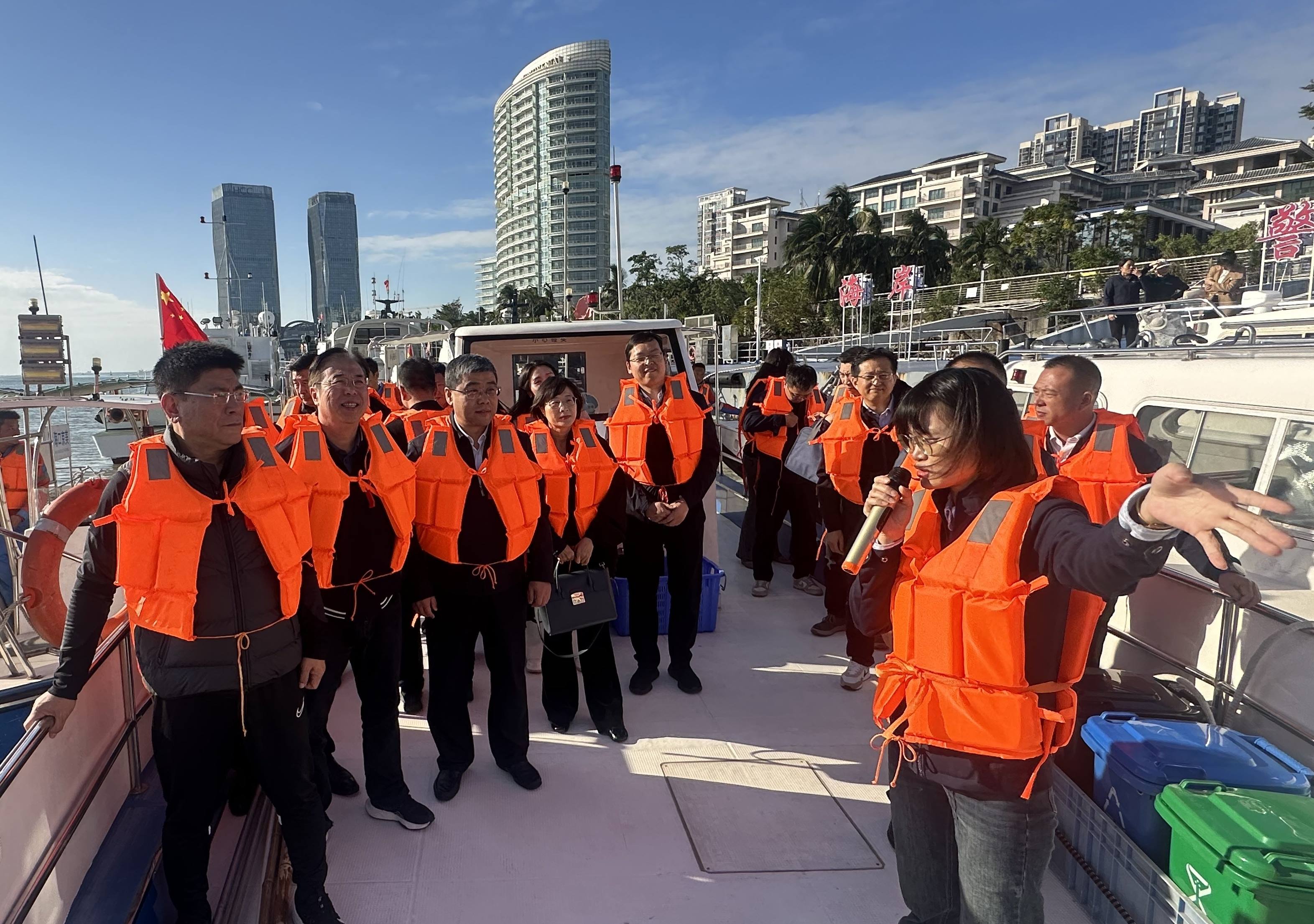 ▲调研海上环卫作业情况